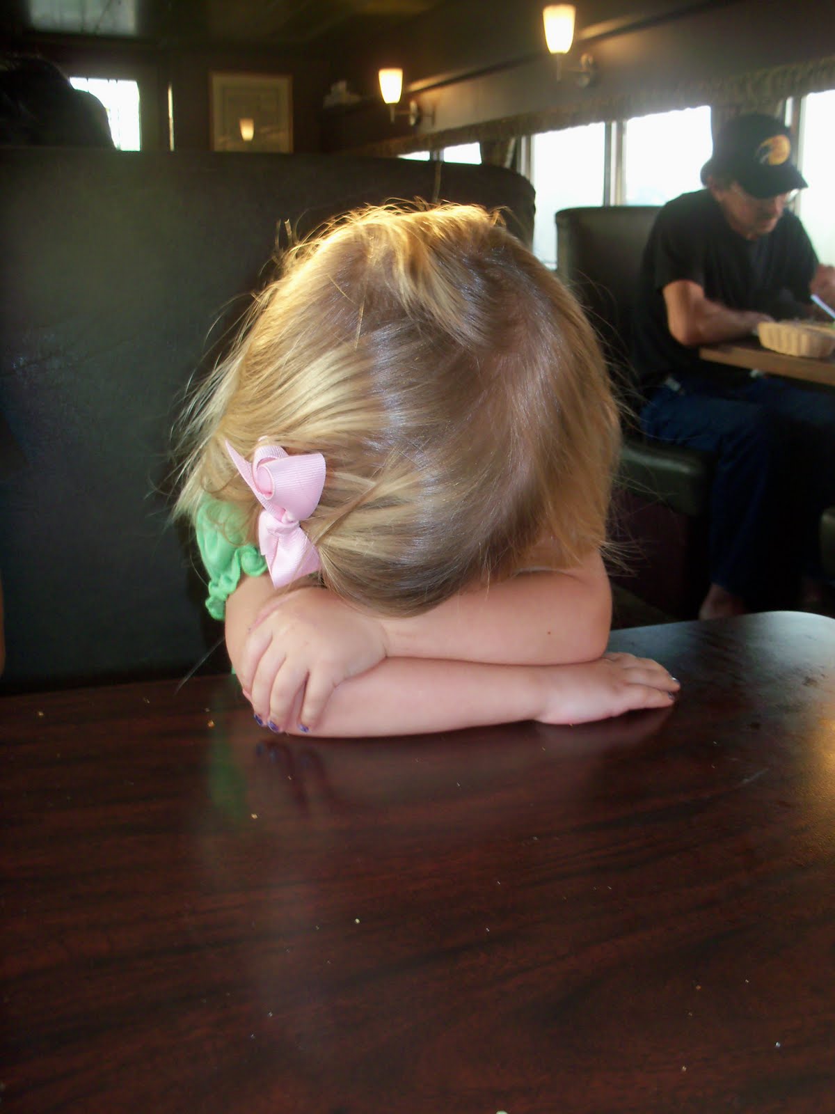 Her younger brother, perhaps from the Karma of pushing his sister off of the bed earlier in the day, tripped on toys in the playroom, planting his only remaining front tooth squarely on a windowsill, jamming it further up in his head (it did improve the appearance since the loose, grayish tooth is no longer jutting a quarter of an inch below the surrounding upper teeth) and splitting his lip! Really.